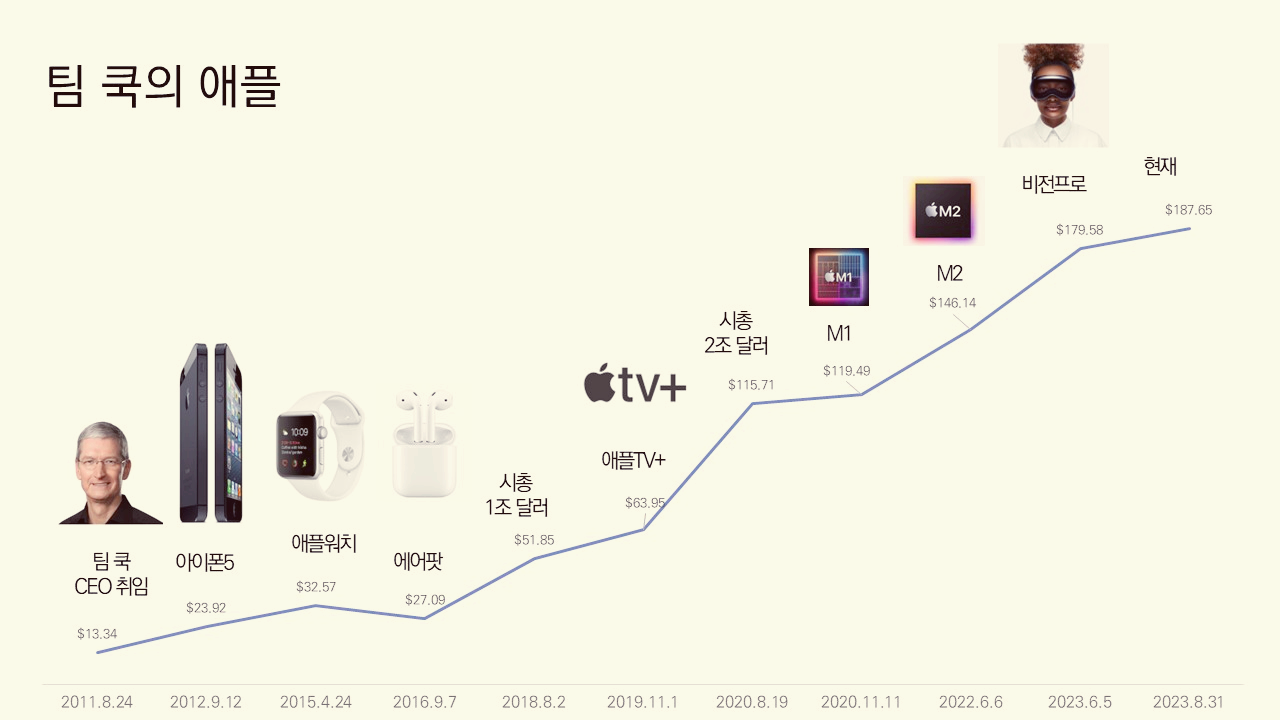 스티브 잡스(Steven Paul Jobs)가 애플의 아이콘이자, 브랜드이자, 애플 그 자체라고 생각하는 분들이 많으실 것으로 생각됩니다. 그래서 팀쿡(Timothy Donald Tim Cook)이 애플 CEO가 되었을 당시, 앞으로 애플은 망할 것이다라는 식의 비난과 우려, 조롱 등이 많았던 적도 있습니다. 하지만, 스티브 잡스 이후 팀쿡은 애플의 혁신을 여전히 주도해 왔고, 끊임없는 성장으로 애플을 이끌고 있습니다. 그래서 팀쿡 시대의 애플을 과연 어떻게 평가해야 할지 살펴보겠습니다.