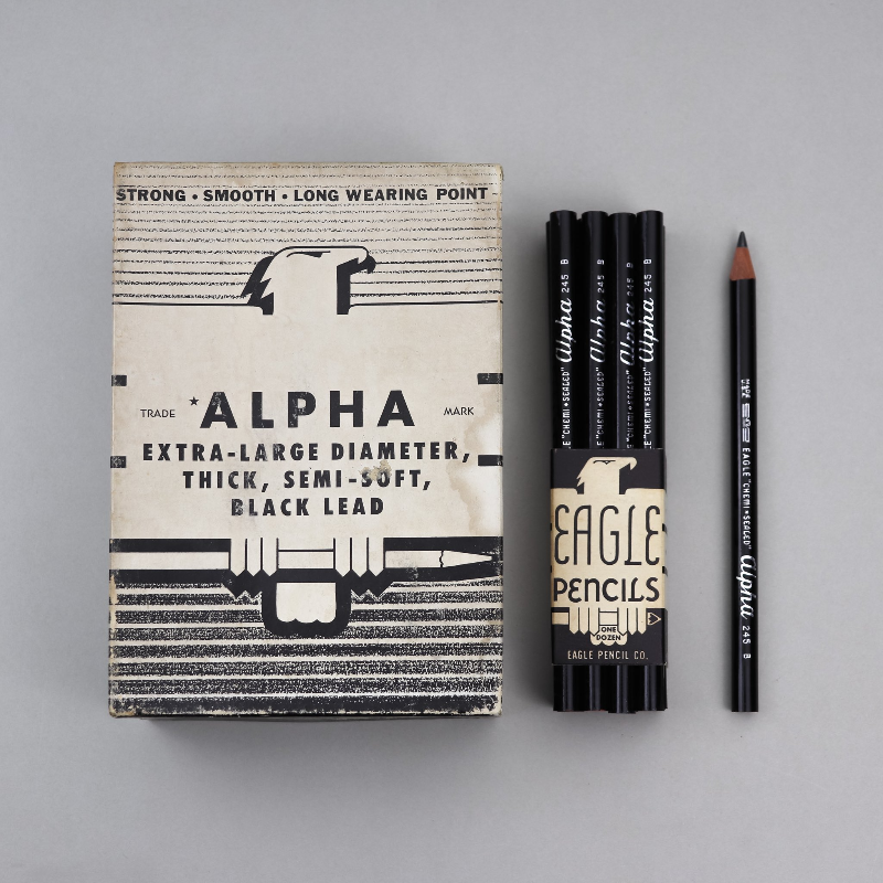 1960년~1970년에 생산된 연필로 지금은 빈티지 연필에 해당합니다. 이 연필이 레오 버넷이 즐겨 쓰던 연필이자, 회사의 비주얼 아이덴티티로 사용되는 연필입니다. 1856년에 설립된 이글 연필(Eagle Pencil)은 당시 미국 4대 연필 업체 중 하나였다고 합니다. 이후 1969년 베롤(Berol)로 회사명을 변경했고, 그 후에는 뉴웰(Newell)브랜드에 인수되면서 사라졌다고 합니다. 알파 245 모델은 1933년에 개발한 연필로, 일반적인 연필(직경7mm)보다 더 굵은 점보 연필로 알려져 있습니다.