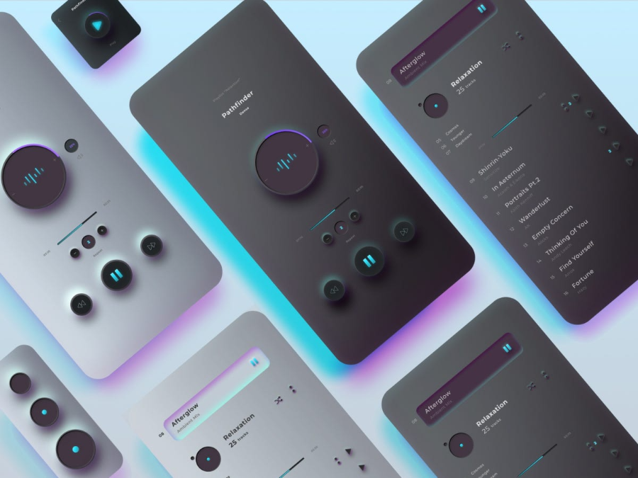 참고로 UI디자인에 몇가지 트렌드를 살펴보면, 플랫 디자인이 더욱 발전한 개념이 머티리얼 디자인(Material Design)입니다. 머티리얼 디자인은(Material Design)은 기존 플랫 디자인을 살리면서도 질감이 느껴지는 표현과 대담하고 선명한 그래픽 디자인, 그리고 아름답고 직관적인 사용자 경험을 위한 자연스러운 애니메이션을 특징으로 한다고 구글은 소개하고 있습니다.그리고 빛에 따른 그림자 효과를 이용하여, 보다 입체감을 살리는 디자인 방식이라고 합니다. 2014년 구글은 머터리얼 디자인 가이드를 발표하면서, 안드로이드OS에 적용하기 시작했습니다. 플랫 디자인과 머터리얼 디자인은 기본적으로는 미니멀리즘을 추구한다는 점에서는 동일한 스타일이라고 할 것입니다. 사실 플랫과 머터리얼에 대한 설명을 찾아보면, 쉽게 이해가 잘 안가는 부분도 있는데요. 쉽게 생각하면, 플랫 디자인은 평면 디자인이고 빛을 고려하여 그림자, 그라데이션, 심플한 패턴 등을 추가해 기존 플랫 디자인을 발전시킨 디자인 개념이라고 보시면 될 것 같습니다. 그리고 최근에 주목받고 있는 디자인이 뉴모피즘(Neumorphism)입니다. 뉴모피즘은 기존 스큐어모피즘과 플랫 디자인의 요소를 결합한 디자인 트렌드입니다. 3차원의 입체감을 표현하지만, 표현 방식은 오로지 그림자와 빛으로 표현하기 때문에 질감이 느껴지지 않아 매끈한 도자기 같은 인상을 주는 특징이 있다고 합니다. 하지만 뉴모피즘은 기존 UI디자인에서 보면 새롭다고 할 수 있지만, 실제 UI에 적용하기 어렵다고 평가를 받고 있습니다.