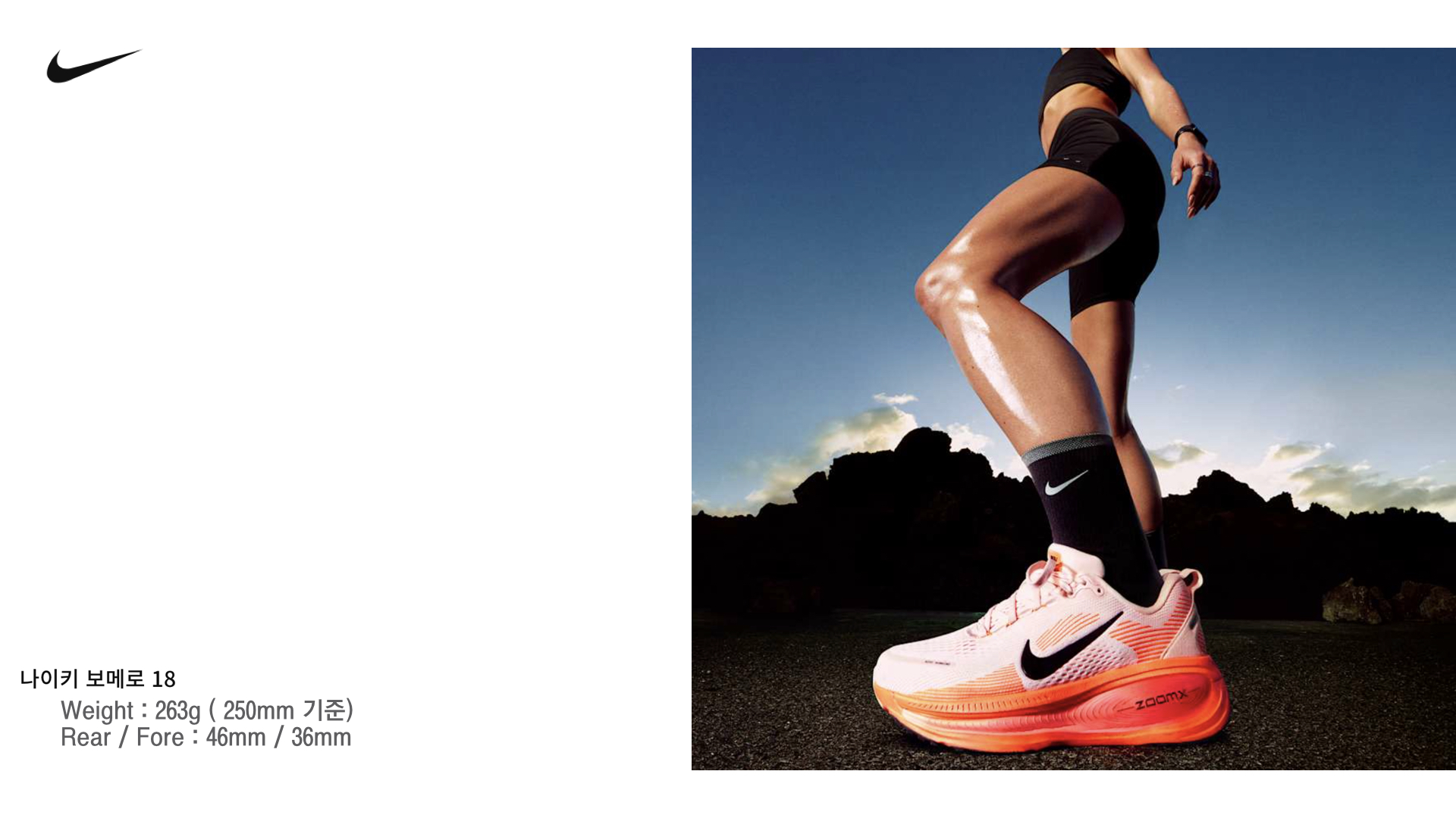 다섯 번째는 나이키 줌 보메로 18(Vomero 18)로, 복합 폼 구조 덕분에 쿠션과 반발력의 균형이 좋아 장거리 러닝에도 적합하고 입문자에게 좋은 러닝화로 인기를 모으고 있습니다. 다만 확실히 러닝화라는 디자인을 보여주고 있어서, 일상에 신기에는 다소 무리가 있어 보이는 디자인이기 합니다.