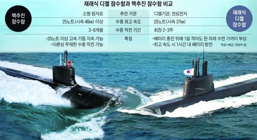 핵추진 잠수함은 말 그래도 핵 원자로를 추진체로 사용하는 잠수함입니다. 현재는 미국, 러시아, 중국, 영국, 프랑스, 인도가 가지고 있습니다. 그리고 이들 국가는 핵무기를 가지고 있는 국가들입니다. 그래서 이들 국가는 핵추진 잠수함과 핵무기 탐재 잠수함을 동시에 운용하고 있는 실정입니다. 이외에 핵추진 잠수함을 추진하는 국가는 프랑스 기술을 바탕으로 하고 브라질, 미국 지원을 받고 있는 호주가 있겠습니다. 핵추진 잠수함은 전략자산으로 평가를 받고 있기도 한데요. 기존 디젤 잠수함은 연료 보급을 위해 수면으로 부상하는 일들이 많고, 실제 전쟁에서 수면 위 부상으로 인해 공격을 받을 수 있는 치명적인 단점을 가지고 있습니다. 이러한 면에서 핵추진 잠수함은 연료 보급 없이 사실상 무제한의 잠항이 가능하기 때문에 실제 전쟁에서 전략자산으로 높은 평가를 받을 수 있는 점입니다. 보통은 수개월에서 1년정도 잠항을 하는 경우가 일반적인데요. 실제 수개월만 가능하다고 하더라도, 바다 수면 밑에서 은밀한 군사작전을 수행하기 탁월한 성과를 만들어 낼 수 있는 요인이라는 점에서 핵추진 잠수함은 엄청난 국방력을 가질 수 있다는 의미이기도 합니다.