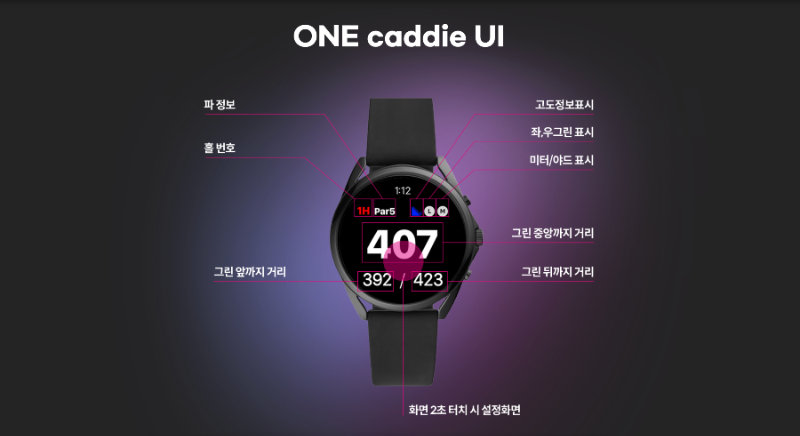 처음에 아이폰과 애플워치가 페어링이 안되서, 1~2홀은 그냥 지나쳤는데요. 페어링을 다시 하니, 매홀에 들어서면 알람오고 심플한 거리정보를 제공해 주었습니다. 홀마다 캐디님이 알려주는 거리와 차이가 없다는 것을 계속 확인하게 되다보니, 거리 정보가 나름 정확하다는 신뢰감이 들기도 했습니다. 원캐디앱은 골프존데카라는 업체에서 제작을 했다고 하는데요. 골프존데카는 골프존의 모회사로 그 동안 골프버디라는 브랜드로 스마트워치, 거리측정기를 만들어 왔던 업체입니다. 그래서 나름 골프장 데이터를 다루어왔던 업체이기 때문에 나름 괜찮은 앱을 만들 수 있지 않을까라는 기대를 하기도 했던 것 같네요.