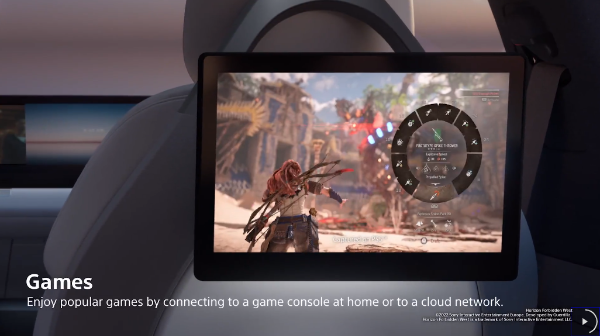 아필라(AFEELA)가 보여주는 몇가지 특이한 점들을 살펴보면, 단연 앞쪽 범퍼, 후면 테일램프에 있는 미디어바입니다. 자동차와 사람간의 커뮤니케이션이 가능하다는 점에서 기존 자동차들과는 다른 시도라는 점에서 눈에 들어오는 부분이었습니다. 그래픽 이미지, 메시지, 텍스트, 컬러 등을 조합해서 미디어바를 설정할 수 있습니다. 마치 스마트폰의 배경화면 설정을 자유롭게 가능하다고 보면 이해가 쉬울 듯하네요. 그리고 내부적으로는 디스플레이로 꽉 채워진 모습입니다. 포트나이트를 제작한 에픽 게임즈의 언리얼 엔진을 도입해서 인터테이먼트 기능을 강화했다고 밝히고 있으며, 추후 플레이스테이션5에 적용된 햅틱 피드백 등의 기술도 추가할 것이라고 합니다. 소니의 강점인 플레이스테이션 콘텐츠를 적용해서 게임 기능이 강력하게 탑재된다는 점은 아무래도 가장 큰 매력이지 않을까 생각됩니다. 또한 소니 콘텐츠 캐릭터들로 설정한 디스플레이 테마를 만들 수 있다는 점도 눈에 띄는 부분이었습니다.