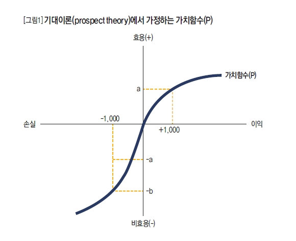 2002년 노벨경제학상을 수상한 심리학자 카너먼(Daniel Kahnema)교수는 1979년 트버스키(Amos Tversky)와 함께 프로스펙트 이론(prospect theory) 을 발표했습니다. 기대 이론이라고 하는 연구는 주류 경제학에서 받아들어졌던 부분이 심리학에서 발견한 새로운 형태의 가치 함수를 발표함으로 새로운 주목을 큰 연구라고 할 수 있습니다. 다른 준거 의존성(reference dependency), 민감도 체감성(diminishing sensitivity), 손실 회피성(loss aversion)이라는 특징을 찾아내게 되는데요.