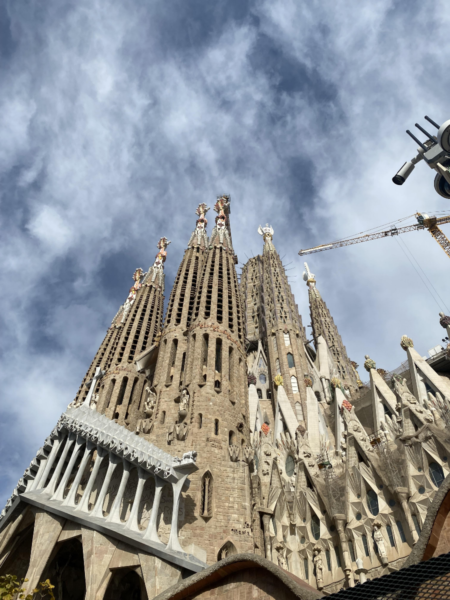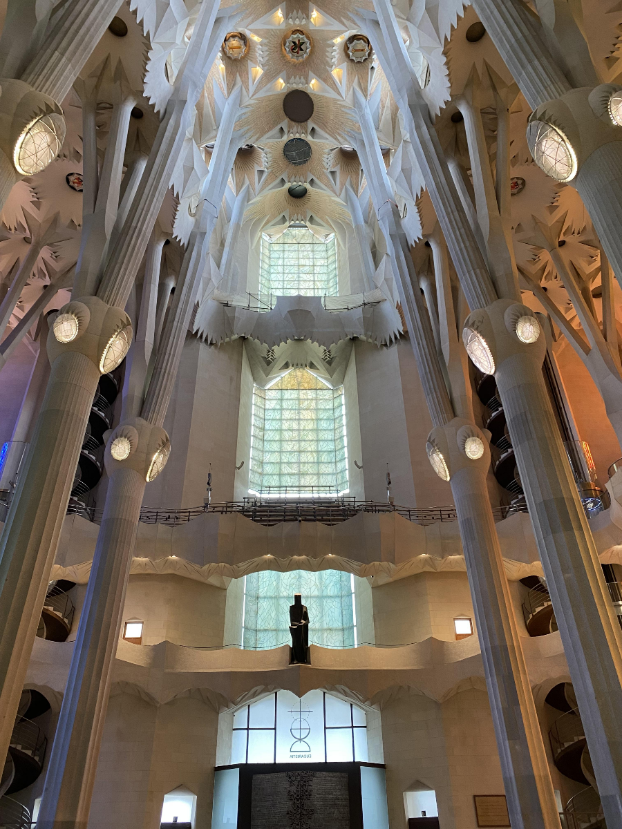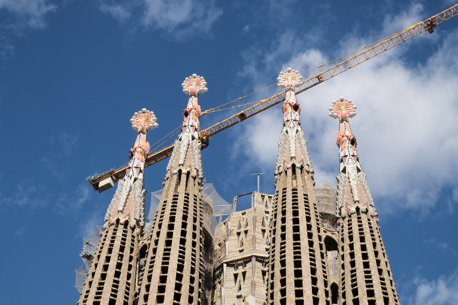 첨탑을 기준으로 보면, 총 18개가 있습니다. 12개탑은 십이사도, 4개탑은 마태, 마르코, 루한, 요한 복음서를 나타내며, 중앙에 있는 2개탑이 예수, 성모 마리아를 표현하고 있습니다. 워낙 규모가 크다 보니, 첨탑 개수도 잘 이해가 안가실수도 있을 것 같습니다. 그냥 가운데 중앙을 기준으로 이해하시면 조금 쉬울 듯한데요. 가장 높은 예수의 탑은 아직 완성이 안되었습니다. 가장 높은 예수의 탑을 둘러싸고 있는 4개의 탑이 2023년에 개관했으며, 중앙에 완성될 예수의 탑 앞에 있는 별 모양의 성모 마리아의 탑도 2021년 개관을 한 상황입니다. 그렇게 4개의 탑과 성모 마리아의 탑, 그리고 주변을 둘러 쌓고 잇는 첨탑이 12개의 십이사도라고 이해하시면 좀 쉽게 이해가 가실 듯하네요. 현재 공사중인 중앙의 예수의 탑이 완성이 될 경우 세계에서 가장 높은 성당이 될 것입니다. 가우디 높이 역시도 172.5m로 제한을 하고 있는데, 이는 바르셀로나에서 가장 높은 몬주익 언덕이 173m라는 점을 감안하여, 자연의 높이 이상으로 짓지 않겠다는 생각을 가지고 있었다고 합니다.