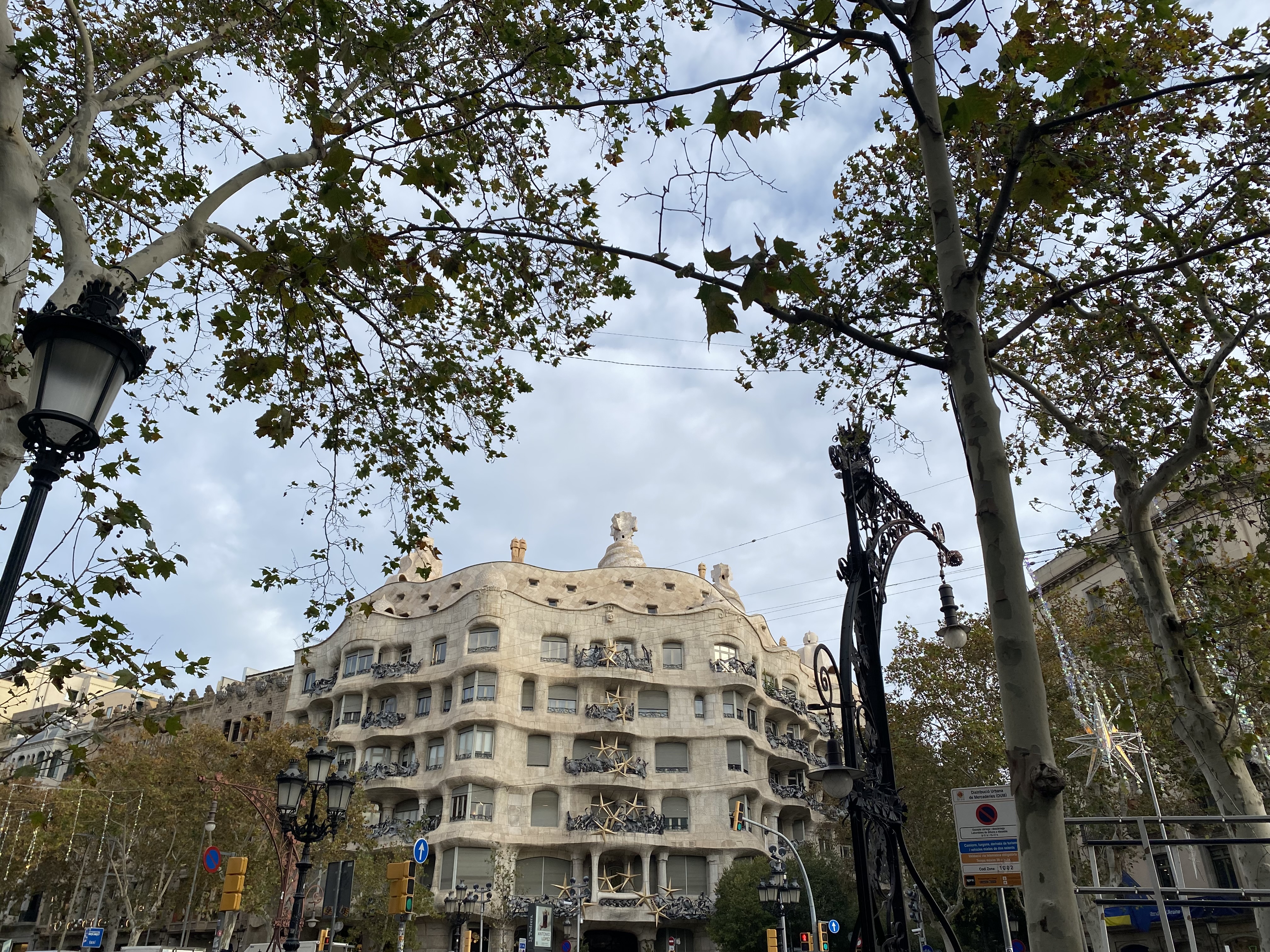 카사 바트요가 있는 그라시아 거리를 조금만 더 걷다보면, 카사 밀라라는 역시 가우디의 건축물이 있습니다. 이 건물 역시, 가우디는 사업가였던 페르 밀라(Pere Mila)에게서 가우디가 의뢰를 받아서 완성한 건축물입니다. 역시 유네스코 세계문화유산에 등재된 작품으로 외관은 물결무늬의 상아빛 돌들이 건물을 감싸고 있고, 외벽에는 창을 내기 위한 구멍들이 나 있습니다. 넝쿨나무 줄기의 모양의 철제 건물 난간, 나뭇잎 모양의 가구 등으로 자연을 여전히 모티브로 하고 있으며, 실내 역시도 우리가 생각하는 직선의 건축이 아닌 아치형을 만들고, 건축물의 중심부는 타원형 중정을 만들어 햇빛, 공기의 순환 등을 고려한 디테일한 생각들이 담겨져 있습니다. 또한 옥상 역시도 굴뚝, 환기통, 계단실 등을 조각품으로 만들어서, 마치 사람 머리 같은 신비감을 주는 건축을 만들어 낸 것으로 생각됩니다. 카시 밀라 1층에는 현재 커피숍 및 식당으로 운영으로 되고 있어서, 실내를 조금이나 보고 싶어서 들어갔었는데요. 가우디의 건축들이 보여주는 직선이 아닌 곡선과 자연에서 연상하는 장식들도 살펴볼 수 있었습니다. 바르셀로나에서는 카사 밀라 건물을 채석장, 라 페드레라(La Pedrera)라고 불리우고 있다고 합니다. 카사 바트요의 파사드가 확장되어 발전된 카사 밀라는 파사드 전체가 파동을 치는 형태로, 바르셀로나 주변에 산에서 발견되는 거대한 암석 지형을 닮아서 채석장으로 불리우고 있다고 합니다.