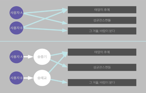 협업 필터링은 사용자의 행동 정보를 분석하는 방식입니다. 그렇게 해서 비슷한 성향의 사용자들을 그룹핑하고 사용자들이 좋아하는 항목을 추천하는 기술로 사용자의 수가 많은 경우 계산이 오래 걸리는 단점이 있기도 하고, 소수의 인기가 많은 컨텐츠가 추천되는 비율이 높아지기도 하는 것으로 알려져 있습니다. 그리고 여기서 좀 더 발전한 것이 모델 기반 협업 필터링(Model-based collaborative filtering)입니다. 사용자가 특정 항목을 선호하는 이유를 알고리즘적으로 알아내는 기법이라고 합니다. 예를 들어 특정 영화를 좋아하는 사용자가 좋아하는 이유를 알아내고 이를 기반으로 추천하는 방식입니다. 결국은 모델 기반 협업 필터링을 하기 위해서는 좀 더 세분화된 컨텐츠 기반 필터링이 적용되기 때문에 협업 필터링과 컨텐츠 기반 필터링이 복합적으로 사용된다고 할 수 있습니다.